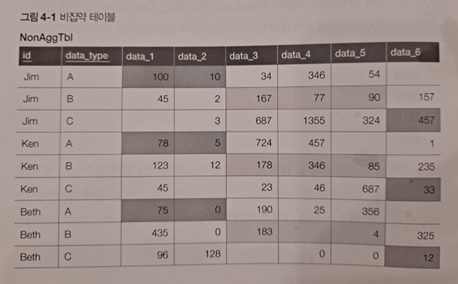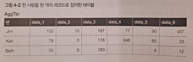- 비집약 테이블에는 한 사람과 관련된 정보가 여러 레코드에 분산되어 있어서